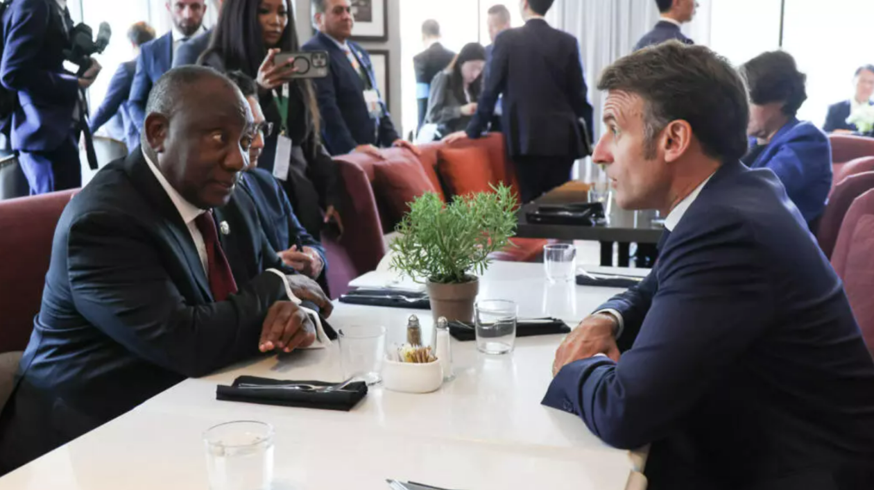南非总统拉马福萨和法国总统马克龙会面(资料图)。图源:法媒